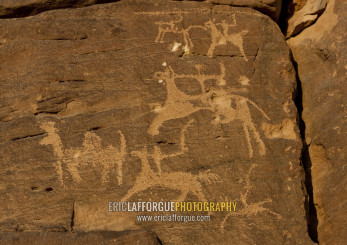 Petroglyphs rock art depicting hunters, Najran Province, Abar Himma, Saudi Arabia