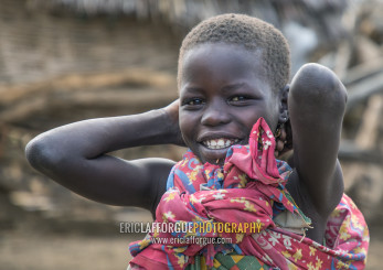 Smiling Toposa tribe girl in a village, Namorunyang State, Kapoeta, South Sudan