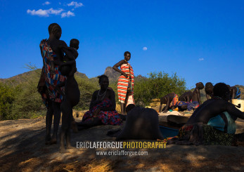 Larim tribe women resting after grinding, Boya Mountains, Imatong, South Sudan