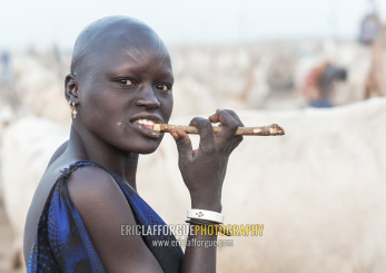 Mundari tribe woman using a wooden toothbrush, Central Equatoria, Terekeka, South Sudan