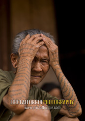 Tattooed khmu minority man, Xieng khouang, Laos