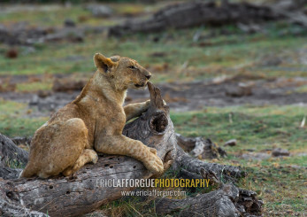 Lioness on a dead trunk, Kajiado County, Amboseli, Kenya