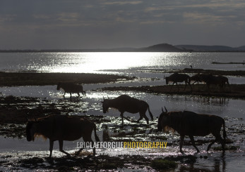 Wildebeests crossing a lake, Kajiado County, Amboseli, Kenya