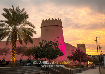 Musmak fort at dusk, Riyadh Province, Riyadh, Saudi Arabia