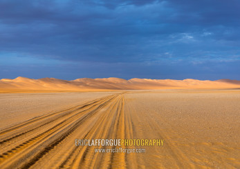 Car tracks in Rub al Khali, Najran Province, Thar, Saudi Arabia