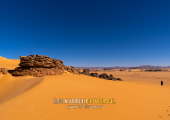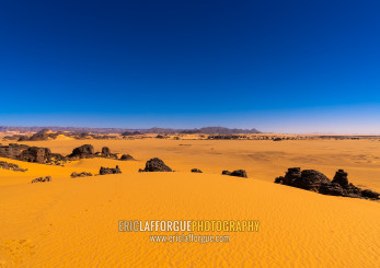 Rocks and sand dunes in Sahara desert, North Africa, Erg Admer, Algeria
