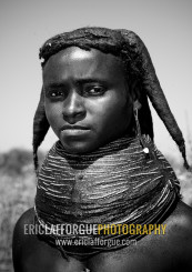 Mumuhuila Girl With A Giant Mud Necklace, Hale Village, Angola