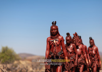 Himba tribe women walking in line, Cunene Province, Oncocua, Angola