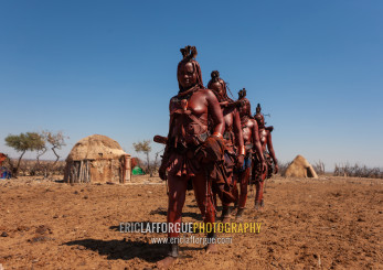 Himba tribe women walking in line, Cunene Province, Oncocua, Angola