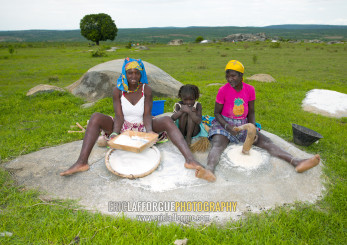 Women And Girl Grinding Grain, Village Of Caconda, Angola