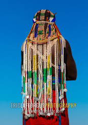 Handa tribe woman with beaded headwear, Huila Province, Hoque, Angola