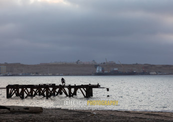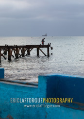 Damaged jetty on praia das Miragens, Namibe Province, Namibe, Angola