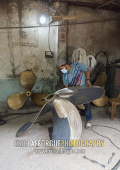 Dockyard worker polishing a propeller, Dhaka Division, Keraniganj, Bangladesh