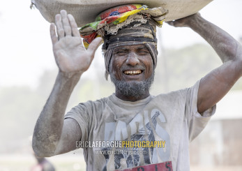Bangladeshi porter carrying cement bag, Khulna Division, Abhaynagar, Bangladesh