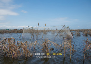 Benin, West Africa, Ganvié, fishermen nets on lake nokoue
