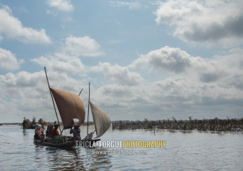 Benin, West Africa, Ganvié, boat sailing on lake nokoue
