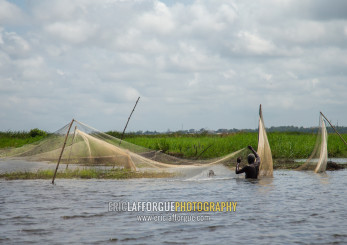 Benin, West Africa, Ganvié, fishermen nets on lake nokoue