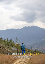 Bhutanese man hiking in the mountain, Paro, Drakarpo, Bhutan