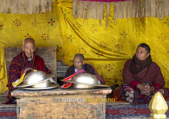Bhutanese leaders in Ura Yakchoe festival, Bumthang, Ura, Bhutan