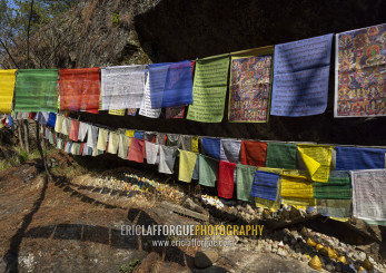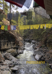 Prayer flags in Tang Chhu River, Bumthang, Mo Chhu, Bhutan