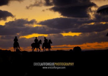 Horses in the sunset, Easter Island, Hanga Roa, Chile
