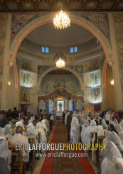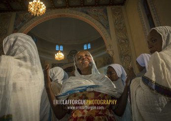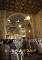 Eritrean people praying in a church, Central Region, Asmara, Eritrea