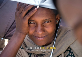 Ethiopian woman under an umbrella, Amhara Region, Lalibela, Ethiopia