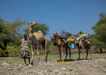 Afar man leading a camel caravan, Afar region, Semera, Ethiopia