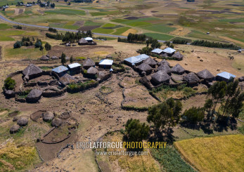 Village with tukuls in the highlands, Oromia, Sheno, Ethiopia