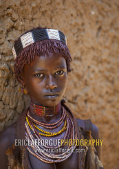 Hamer Tribe Girl In Traditional Outfit, Turmi, Omo Valley, Ethiopia