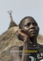 Nuer Tribe Woman Calling On A Mobile Phone, Gambela, Ethiopia