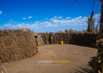 Traditional nyangatom and toposa tribes village, Omo valley, Kangate, Ethiopia