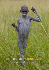 Suri Boy Imitating The Adult Warriors, Omo Valley, Ethiopia