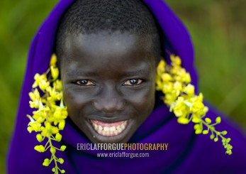 Surma Boy Wearing Flower Ornaments, Kibbish Village, Omo Valley, Ethiopia