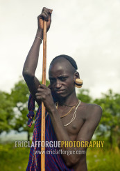 Surma Man With A Stick, Turgit Village, Omo Valley, Ethiopia