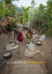 Surma Women Grinding Grain, Turgit Village, Omo Valley, Ethiopia