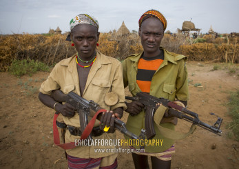 Dassanech Men With Their Guns, Omorate, Omo Valley, Ethiopia