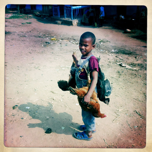 Oromo children selling forked stick oulle, Oromia, Sheik Hussein, Ethiopia
