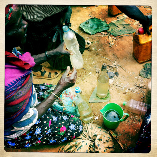 Woman Carrying Bottles From Salvage In A Plastic Bag, Village Of Tepi, Ethiopia
