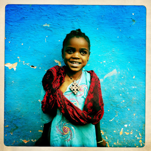 Portrait of a smiling ethiopian girl, Amhara Region, Lalibela, Ethiopia