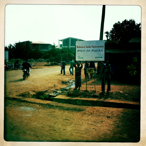 Dorze tribe kids seen through the door of a traditionally bamboo fence, Chencha, Omo valley, Ethiopia