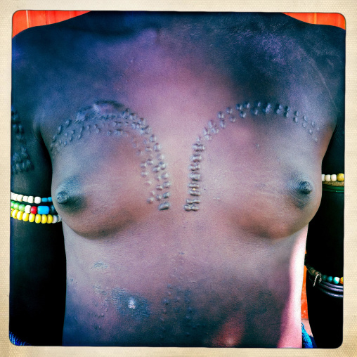 Suri tribe woman ready for a scarification ceremony, Tulgit, Omo valley, Ethiopia