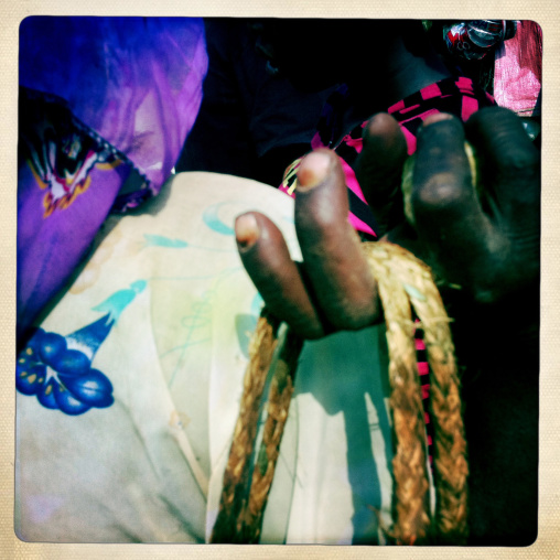 Woman From Anuak Tribe In Traditional Clothing Dancing, Gambela, Ethiopia