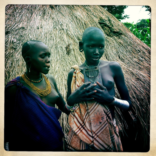 Bodi Man And Woman Portraits Hana Mursi Village Omo Valley Ethiopia