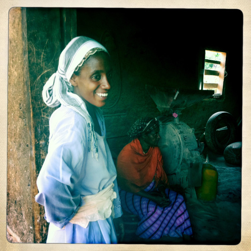 Pilgrim mother with her daughter during kidane mehret orthodox celebration, Amhara region, Lalibela, Ethiopia