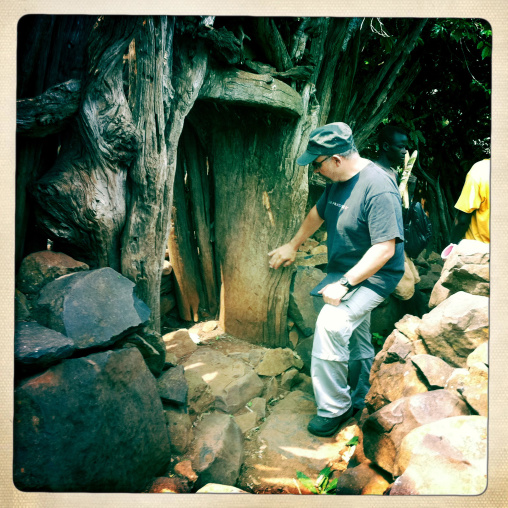 Oromo pilgrim in Sheikh Hussein shrine in a symbolic narrow corridor, Oromia, Sheik Hussein, Ethiopia