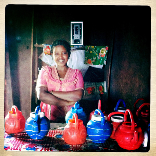 Gurage woman in front of the fireplace inside her traditional house, Gurage Zone, Butajira, Ethiopia