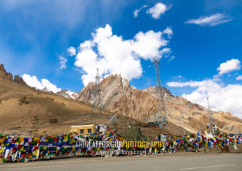 Buddhist prayer flags in the mountain, Ladakh, Fotula, India