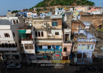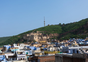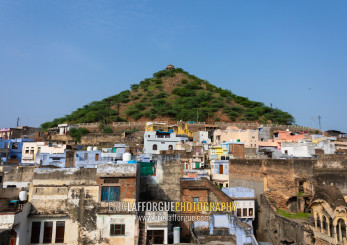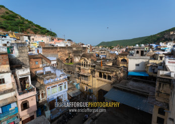 Cityscape with old blue houses brahmins, Rajasthan, Bundi, India