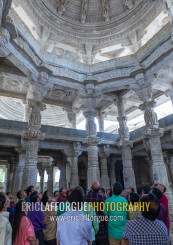 Indian tourists inside jain Tirthankar marble temple, Rajasthan, Ranakpur, India